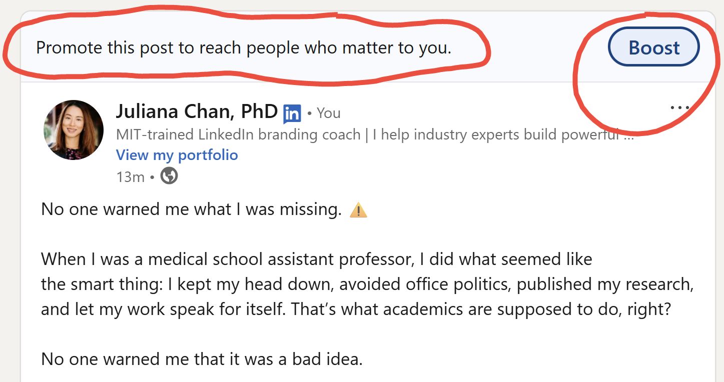 Besides competing with AI-generated content slop and engagement pods, you now have a brand new problem: LinkedIn’s bright blue "BOOST" button on every single post.