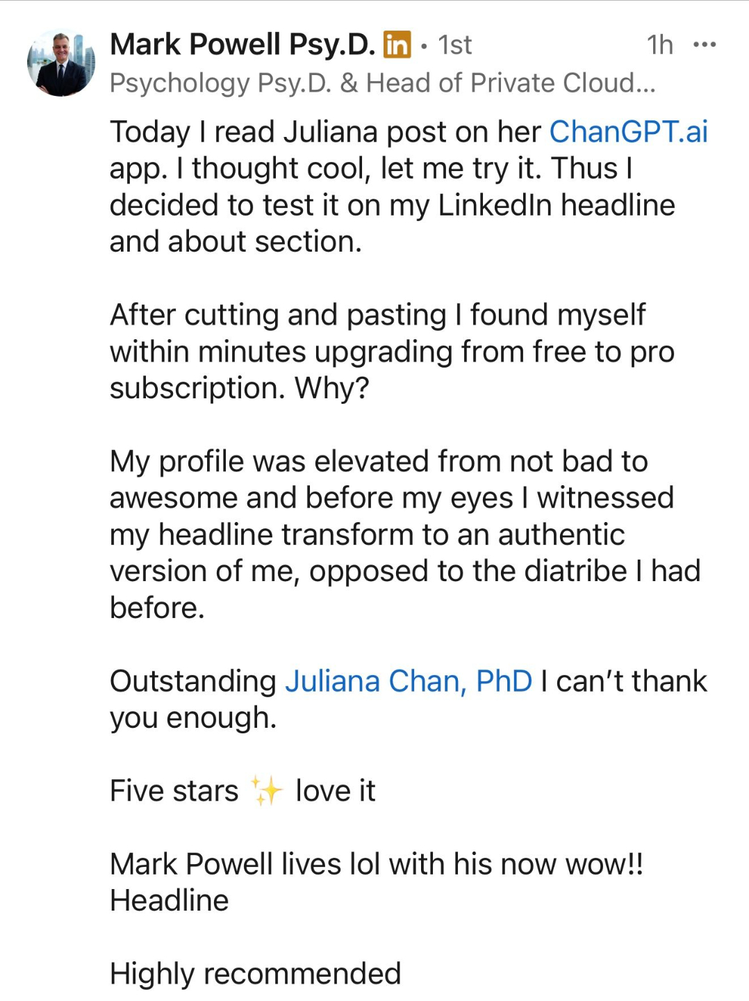 Unlock the full power of AI-driven professional branding and storytelling with ChanGPT Pro.