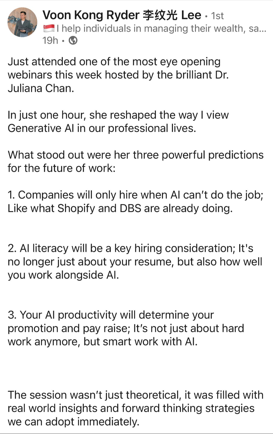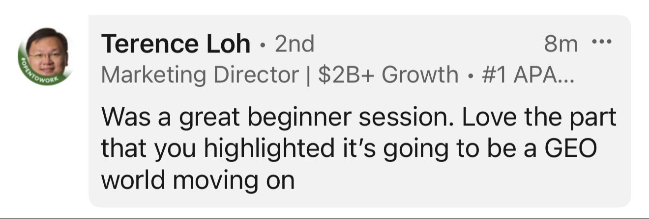 In 2020, I was named an inaugural LinkedIn Top Voice for Singapore, and in 2023, I started to help other industry experts and senior professionals launch powerful personal brands for themselves.